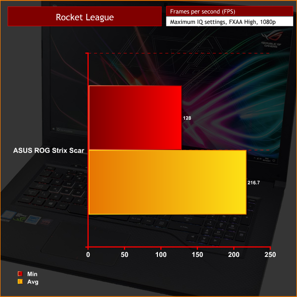 I've also included Rocket League results to show what sort of frame rate is to be expected when playing eSports titles – games like CS:GO, Overwatch and TF2 will be very easily driven at 120 FPS+. It is only with those demanding AAA titles, which may not be very well optimised, when the Scar can't quite make the most of the 120Hz panel.