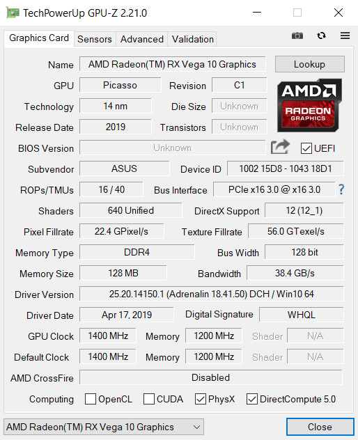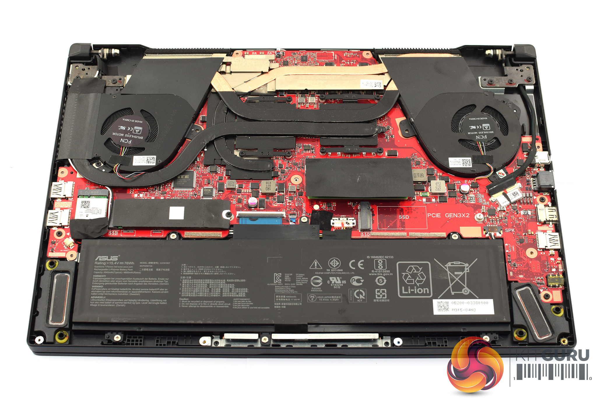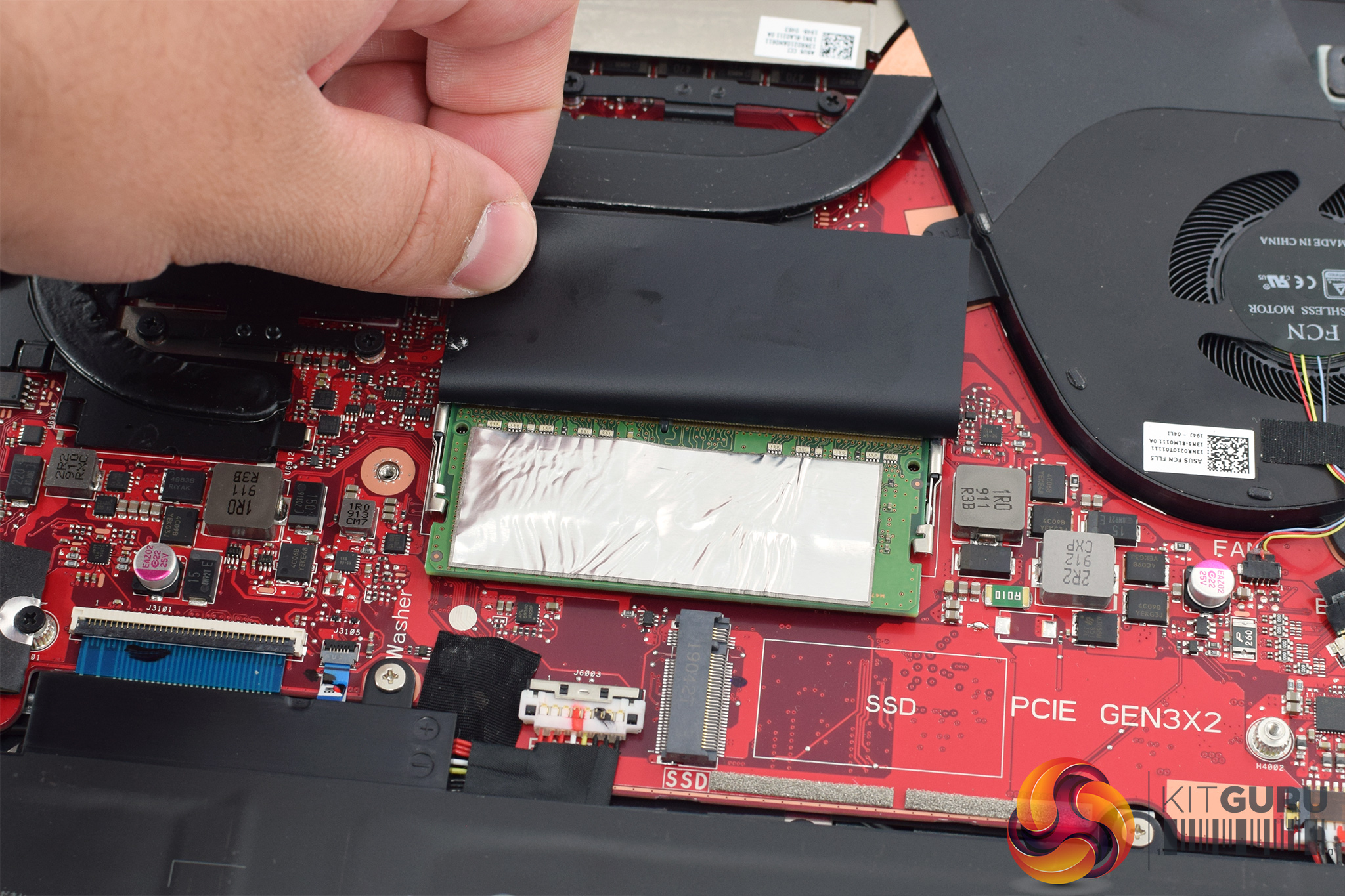 As for the RAM, ASUS made the decision to provide one SODIMM slot – here occupied by 1x8GB DDR4 2400MHz stick – while the rest of the memory is integrated to the motherboard. This is better than having completely inaccessible memory, but it'd be much easier to upgrade the whole lot if there were 2x SODIMM slots. That said, 16GB should be more than enough for gamers using this machine.