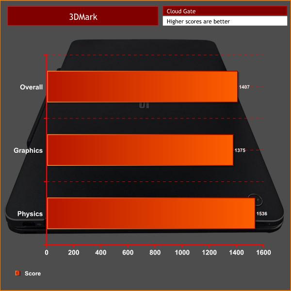 Clearly the T100 Chi will not be winning any awards for its processing and graphical power. For those who may be wondering, we could not include an ‘overall' score on the Fire Strike benchmark as the programme simply would not finish on the T100 Chi, which just serves to show that this Transformer Book is not very powerful at all. However, the Transformer Book was able to run Cloud Gate – the benchmark aimed for portable notebooks and less powerful PCs, so we could at least get a full score on that test.