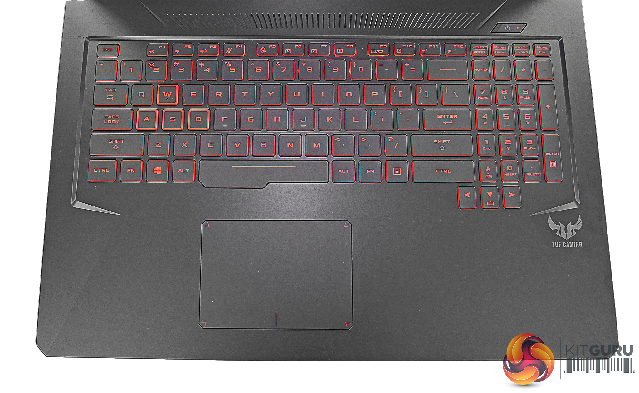 Elsewhere, it is good to see ASUS include a standard keyboard layout, including a num-pad – many, more budget laptops do quite strange with the keyboard layout, so ASUS was keen to emphasise that the FX705 will not cause you any issues in that regard. The keyboard also sports a red backlight for those late-night gaming sessions.