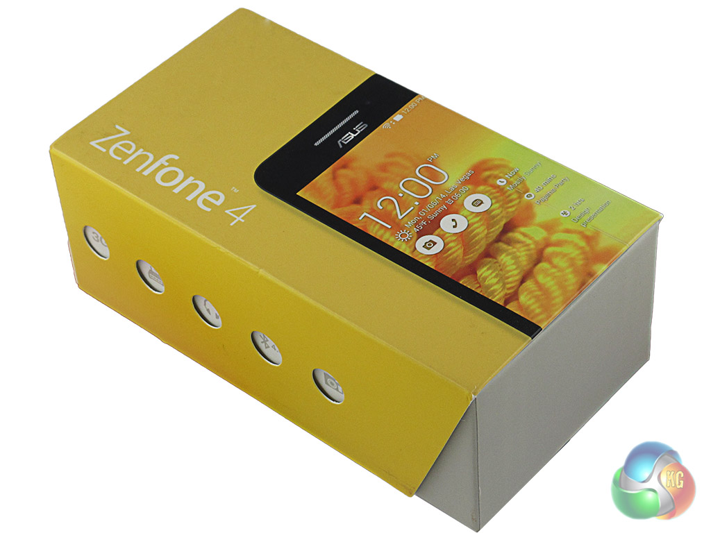 The packaging in which the Asus ZenFone 4 came is very similar to that of it’s bigger brother. A yellow box, to match the yellow back on our sample, features a clean design, with the front taken up by a photo of the device, as well as the words ‘ZenFone 4.’