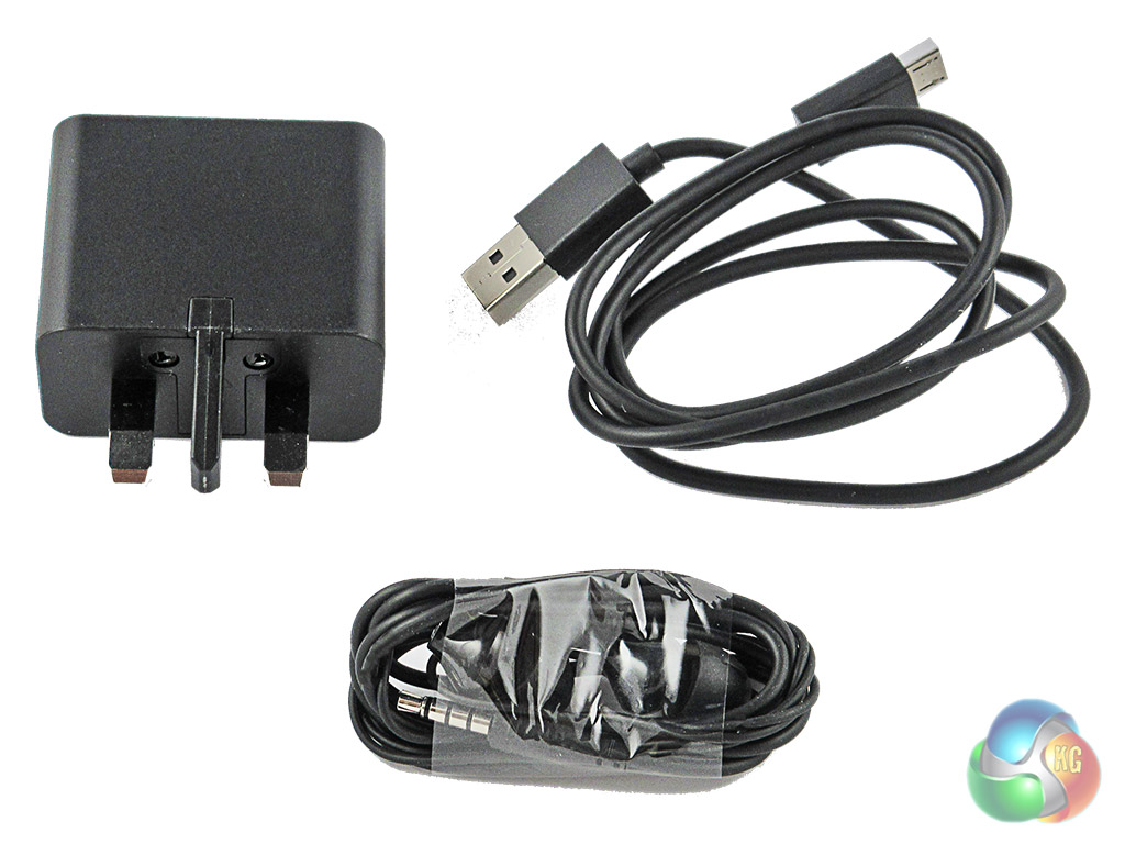 Inside is everything you would expect from a modern smartphone. An AC adapter, microUSB cable, headphones – which aren’t half bad – and a small user guide complete the set.