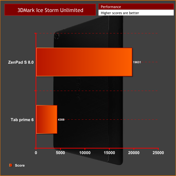 In Ice Storm Unlimited, however, it delivered a huge score of 19631. This is miles ahead of the 4308 scored by the Smart Prime 6. As the ZenPad S 8.0 is not LTE-enabled I cannot post a data speed result.