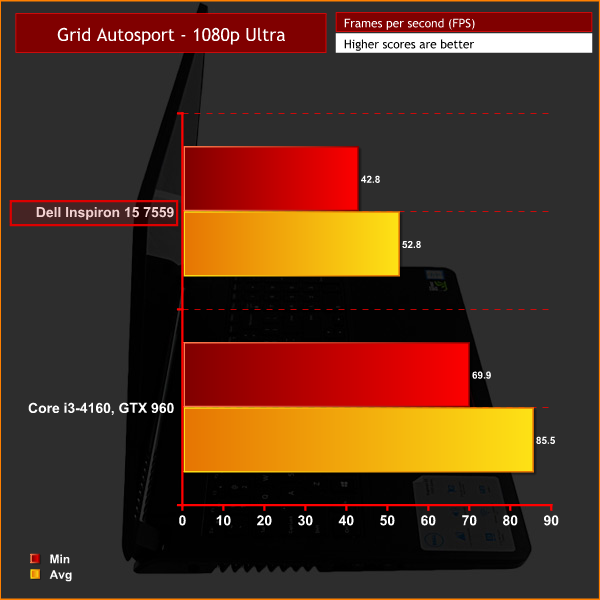 The GTX 960M gives another good showing at 1080p with the ‘ultra' preset and 4x MSAA enabled, it is clearly capable of gaming at reasonable settings at 1080p.