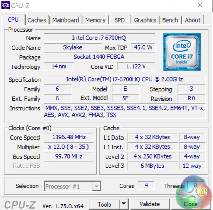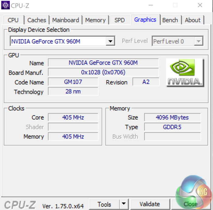 Here you can see an overview of the system CPU and GPU, courtesy of CPU-Z and GPU-Z respectively. The quad-core i7-6700HQ is clocked at 2.6GHz and boosts to 3.5GHz. Unfortunately, the Inspiron 15 7559 sticks with 16GB of older DDR3 RAM, presumably to keep costs down – with 11-11-11-28 timings.
