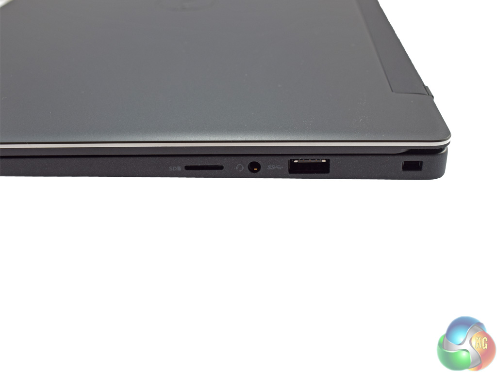 On the right edge of the Latitude 7370 is a Kensington lock, the sole USB 3.0 (Type A), a combo audio jack and a micro SD card slot. While just a single Type A USB could cause problems for some, there are Type C to Type A adaptors on the market which would allow you to take full advantage of the two Thunderbolt ports' extra speed.