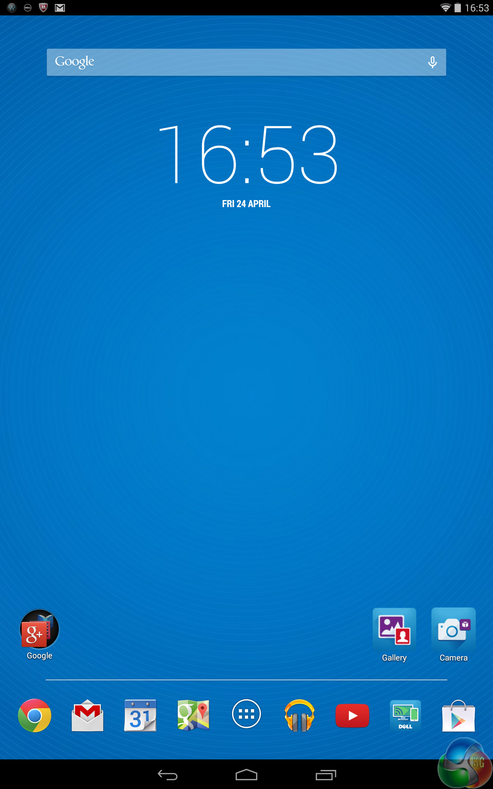 The included launcher is what we like to call ‘Google Now' lite – meaning it is for all intents and purposes the same as Google's own launcher, but lacks the actual ‘Google Now' feature. Dell left the home screens fairly empty, which is a plus – there are no nasty ‘smart weather' widgets taking up almost your entire screen.