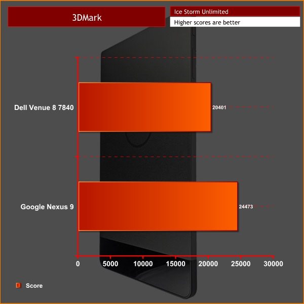 When it came to the 3DMark Ice Storm Unlimited test, the Dell scored 20401. The Nexus was again ahead, with 24473.