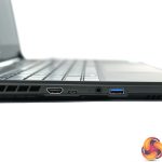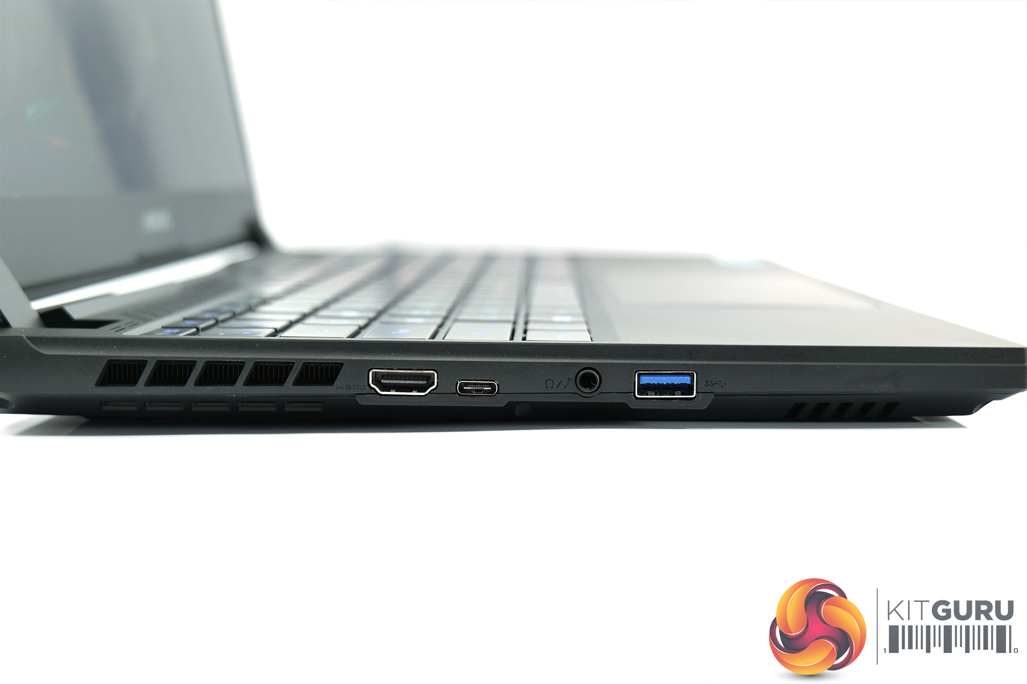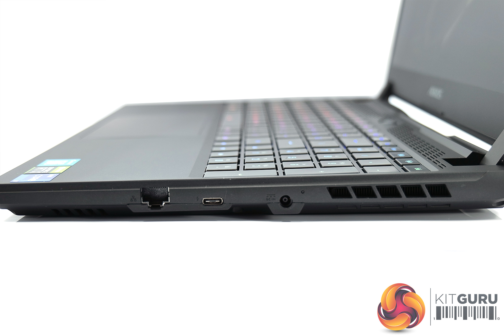 Unfortunately, I'm less keen on the selection of ports and connectors Gigabyte has fitted to the Aorus 15. The left-hand edge is home to a HDMI 2.1 output, USB 3.2 Gen1 (5Gbps) Type-C, an audio jack and one USB 3.2 Gen1 (5Gbps) Type-A port. Over on the right-hand side, there's the power input, a Thunderbolt 4 (Type-C) port and Ethernet. For me, this is very disappointing for a machine of this calibre. Two Type-C ports is fine, especially with one being Thunderbolt, but only one type-A port?! And no SD card reader either – I'd understand if this was a super thin-and-light machine, but for a gaming laptop of this calibre, this feels very weak to me.