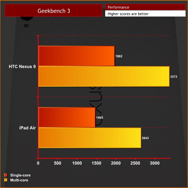 To come to the benchmarks then, the Nexus 9 also proved very adept here. In Geekbench 3, it scored a huge 1962 for single-core performance, with 3373 the multi-core score. This comfortably beat the iPad Air's scores, which posted 1465 and 2643 respectively.
