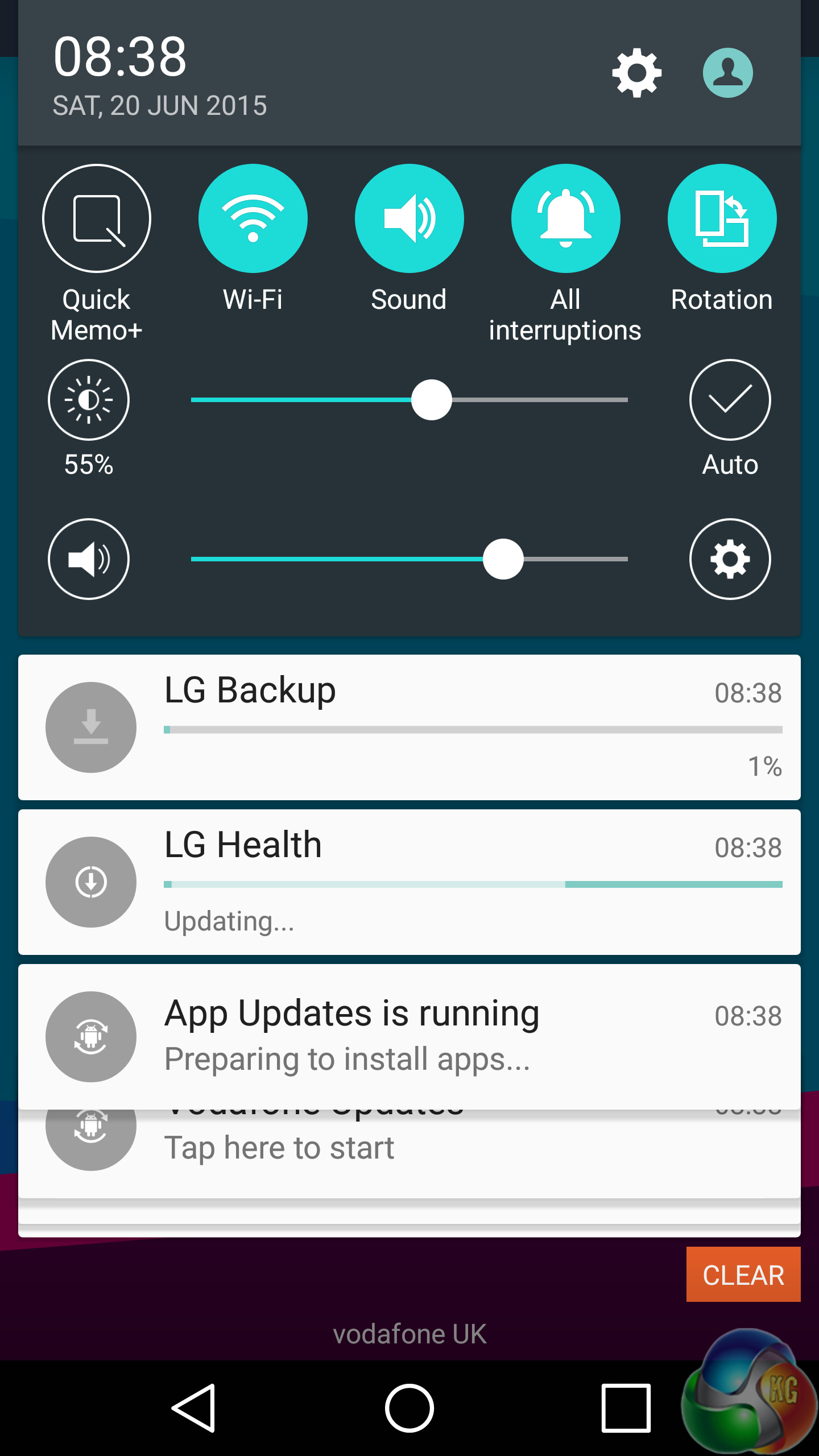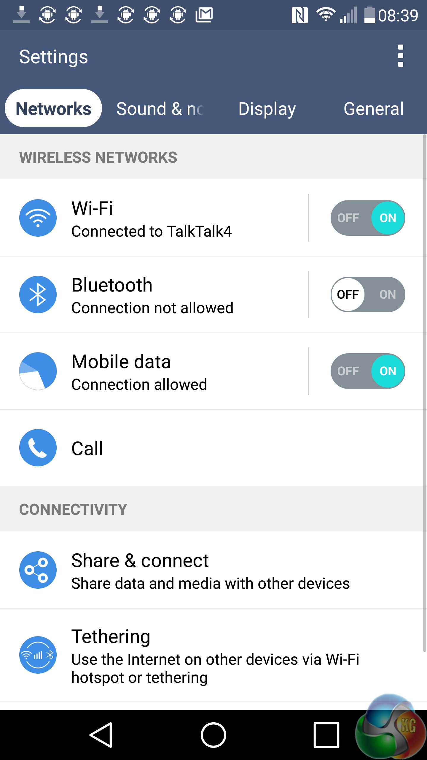 The rest of Lollipop is quite familiar. The settings menu is nice and clean, with different category options at the top – which mean the settings menu itself does not go on forever. The quick settings drop-down is also fairly standard, featuring circular buttons which turn turquoise when activated. LG's KnockOn feature also remains, where you can tap a pattern on the display to turn on and unlock the phone.