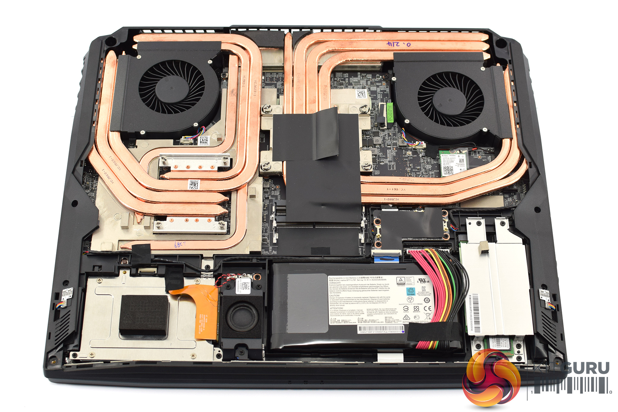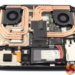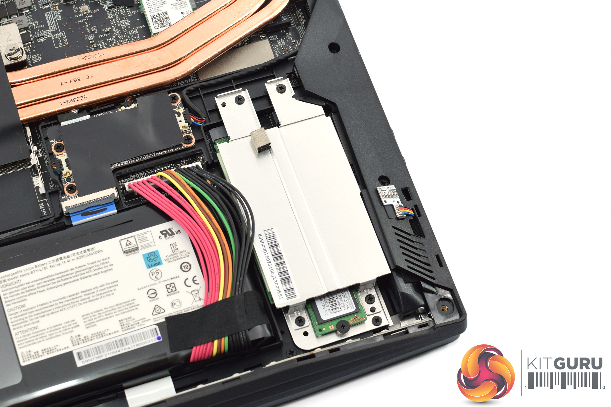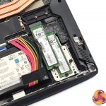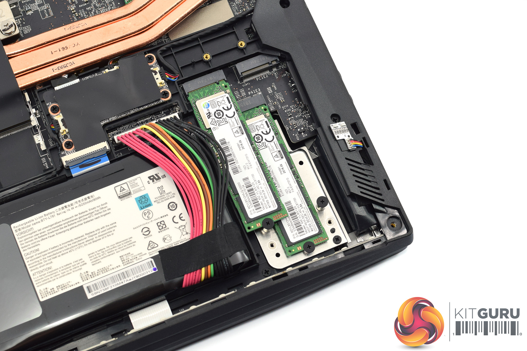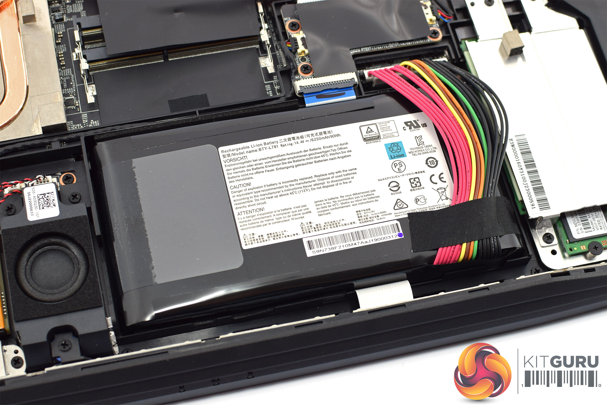 Alongside that there is also a standard RTX 2080, not Max-Q, graphics chip in this system, with 64GB DDR4 2666MHz memory. Storage comes from 2x 512GB Samsung PM981 NVMe SSDs in RAID 0, as well as a 1TB 7200rpm 2.5in HDD. Powering the machine – for the very brief periods where it can survive without AC power – we have a 90Wh, 8-cell battery.