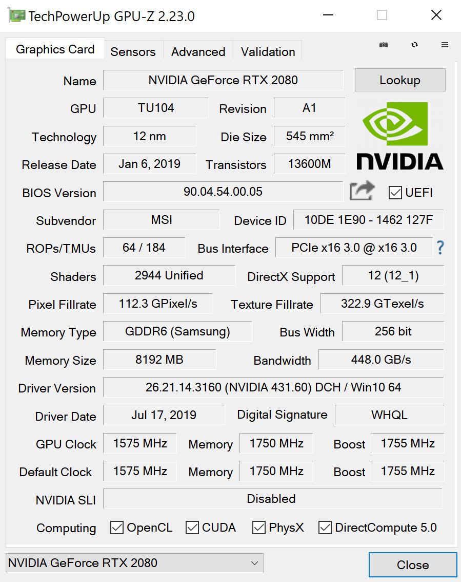 - Graphics: GeForce® RTX 2080 8GB GDDR6