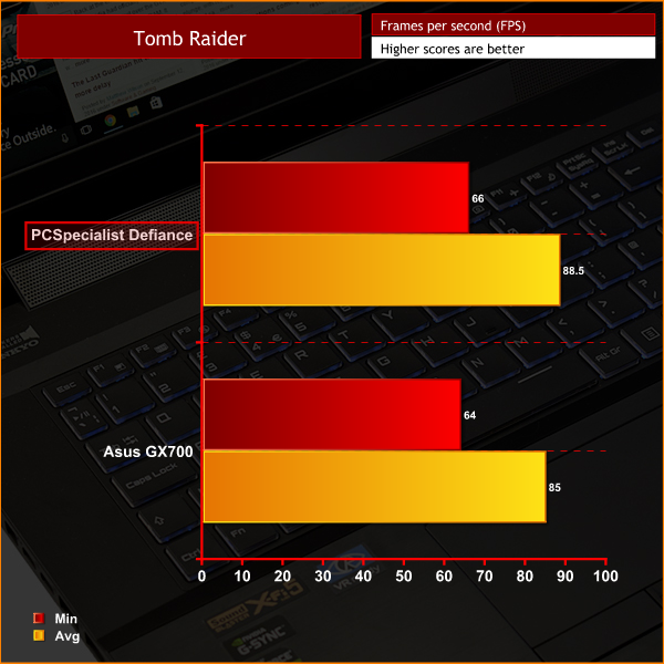 In our first game, the Defiance III just pips the Asus GX700, with its average frame rate score being just 3fps ahead. However, the Defiance costs £2250 less, and performs better (in this test, at least) – which certainly bodes well for the other games on test today.Taken in isolation, both sets of frame rates are excellent, too.