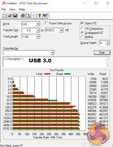 Most importantly, it is capable of saturating the USB 3.0 bus, allowing us to test the speed the single USB 3.0 port delivers. To test this, I ran both CrystalDiskMark and ATTO Disk Benchmark on the Trion 150 drive.
