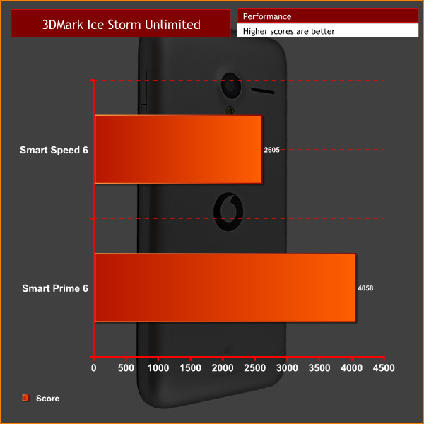 Despite this, the Prime 6 proved the more powerful device in the Ice Storm Unlimited test, by a fairly significant margin. The obvious conclusion to draw from both tests is that the processing power of the Speed 6's MT6735M CPU is greater than its graphical power by some way.