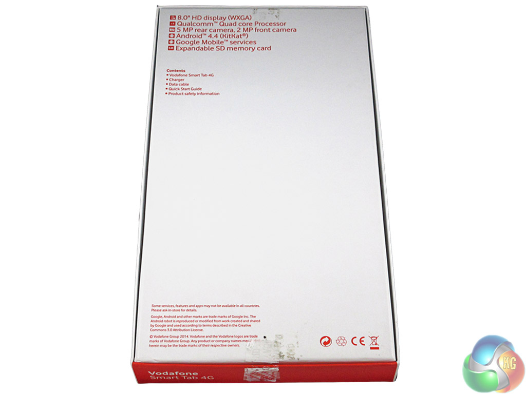 The Smart Tab 4G comes in a fairly standard white and red box – traditional Vodafone colours.