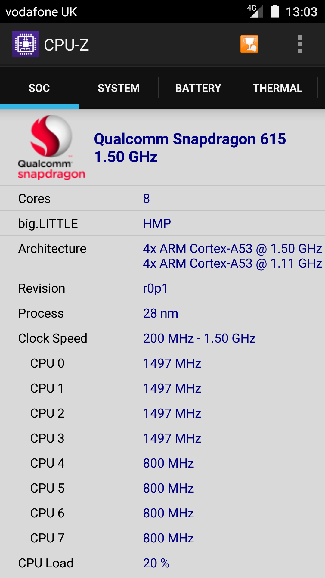 Clearly, the 615 CPU is a great performer and is a good foundation for a decent smartphone. However, what is so striking is that Vodafone use the 615 in their £125 phone, while the OPPO and HTC models cost over double the price of the Smart ultra 6. As such, it is simply phenomenal performance for the money.
