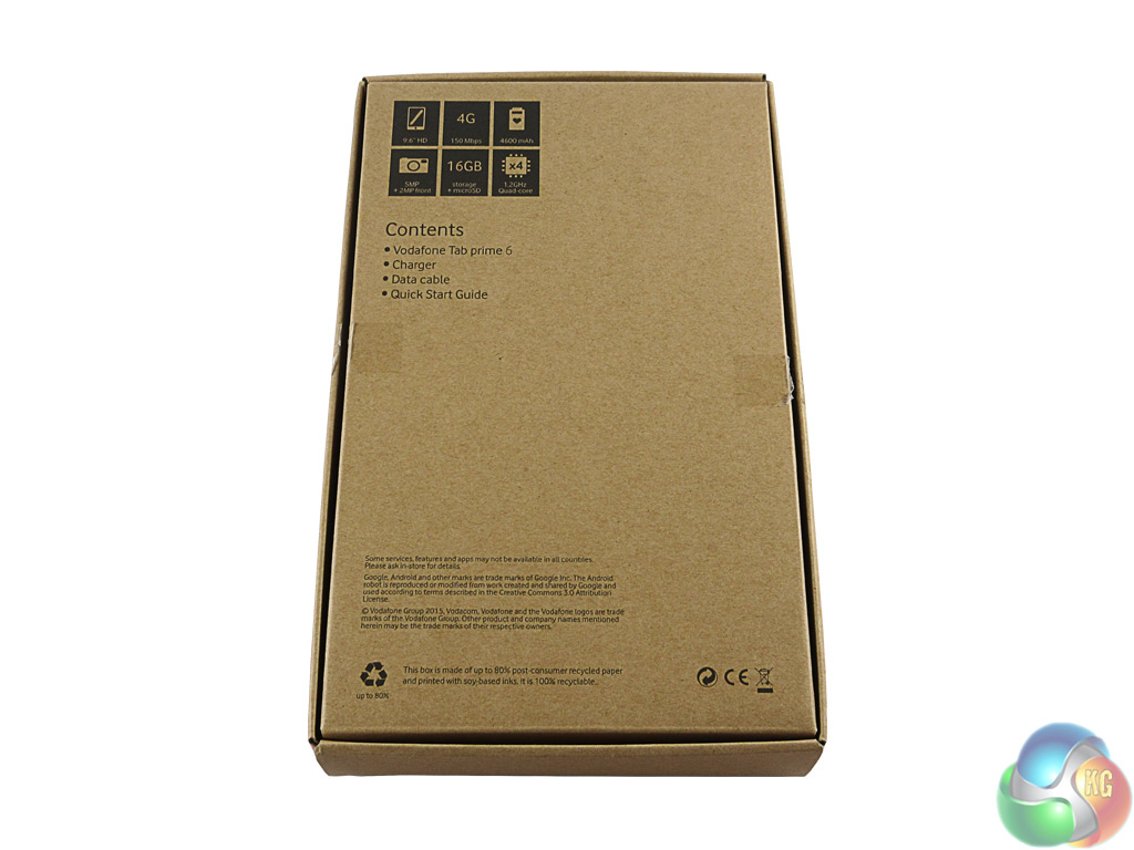 Just like the ‘Smart' devices from Vodafone, the Tab prime 6 ships in a recycled cardboard box. A photo of the tablet itself is on the top of the box and spreads across the right edge, too.