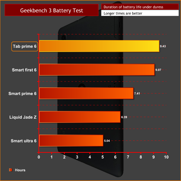 In the Geekbench 3 battery benchmark, I found the results support my view. A time of 9:43 is decent – it is the best we have seen yet, but crucially all the other devices are smartphones. For a quality tablet, I would hope for an extra couple of hours in the benchmark.