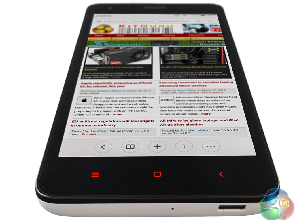 An HD, 4.7-inch screen is fitted on the Redmi 2. This gives a PPI density of 312, meaning the display is very crisp and vivid. Text is therefore easy to read, and playback of HD video is fully supported. For the price, it would be unreasonable to expect a Full HD panel.