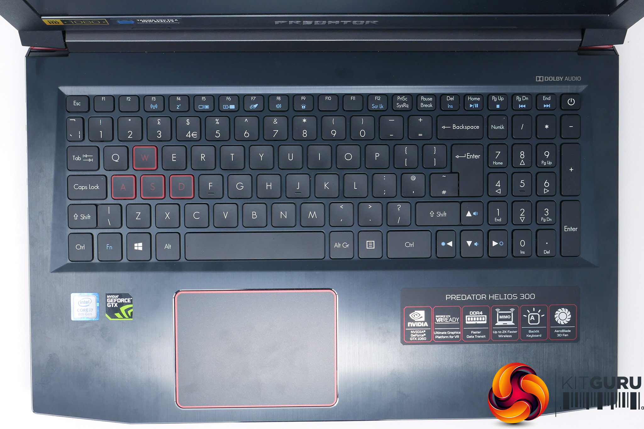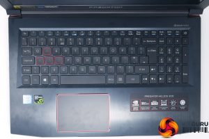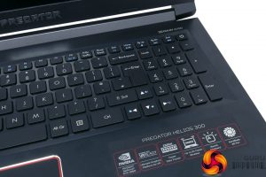 The Helios 300’s keyboard is by and large very good. The layout of the main section of keys is all but perfect, with a proper UK layout offered here in the UK and well-spaced keys used throughout. The only caveats are the Enter and hash keys. They’re too close together such that we regularly hit the hash key instead of the Enter key, but you could probably learn to get round this over time.