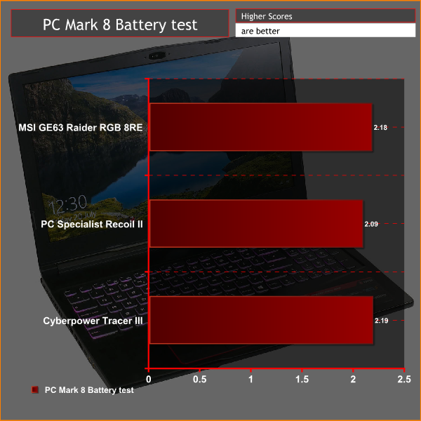 As we've come to expect of machines of this type, battery life is not the GE63's strong suit. You'll got little more than two hours of use, regardless of how low the screen brightness is and how little you're doing.
