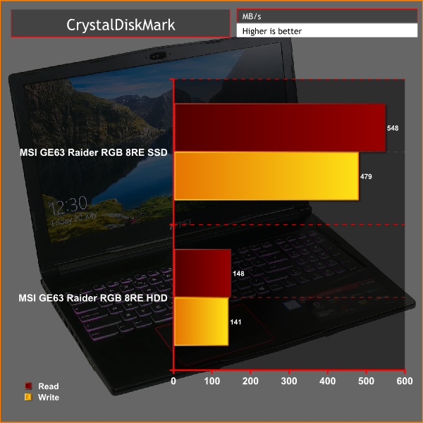 Meanwhile, the 1TB hard drive offers the sort of performance that’s typical for a basic 2.5inch drive. With 1TB SSDs now available for well under £200, upgrading this 2.5inch drive would be a good way to ensure all the data on your laptop can be accessed nice and quickly.