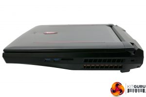On the left are three full-size USB 3.0 ports as well as four jack sockets for surround sound audio output. Finishing things off is the right side that has another couple of USB 3.0 ports, an SD card reader and a Kensington lock slot. Both sides and the back also have huge openings for all the cooling ventilation.