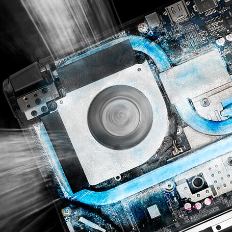To keep all this high-end hardware cool, Gigabyte has outfitted the Aorus 5 vB and Aorus 7 vB laptops with a new Windforce cooling system that is capable of pushing over 150W of heat dissipation via a four heat pipes and heatsink solution that covers both the CPU and GPU.