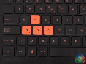 The keyboard takes advantage of the width afforded by the 17.3in form factor to provide a full numerical keypad on the right. The W-A-S-D keys are coloured orange so you’re unlikely to miss them, even in quite dim conditions.