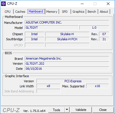 The GL702VT sports a Core i7-6700HQ processor from Intel's latest Skylake generation. This quad-core CPU runs at a nominal 2.6GHz, but with a 3.5GHz Turbo mode for a single core, 3.3GHz for two cores, and 3.1GHz for all four – so it’s essentially a 3.1GHz processor.