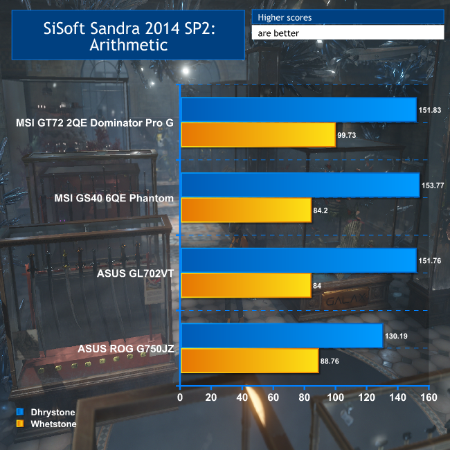 As expected, the GL702VT's arithmetic performance is virtually identical to the MSI GS40's – they have the same CPU, after all. But the memory bandwidth perhaps explains the reduced 3DMark performance.