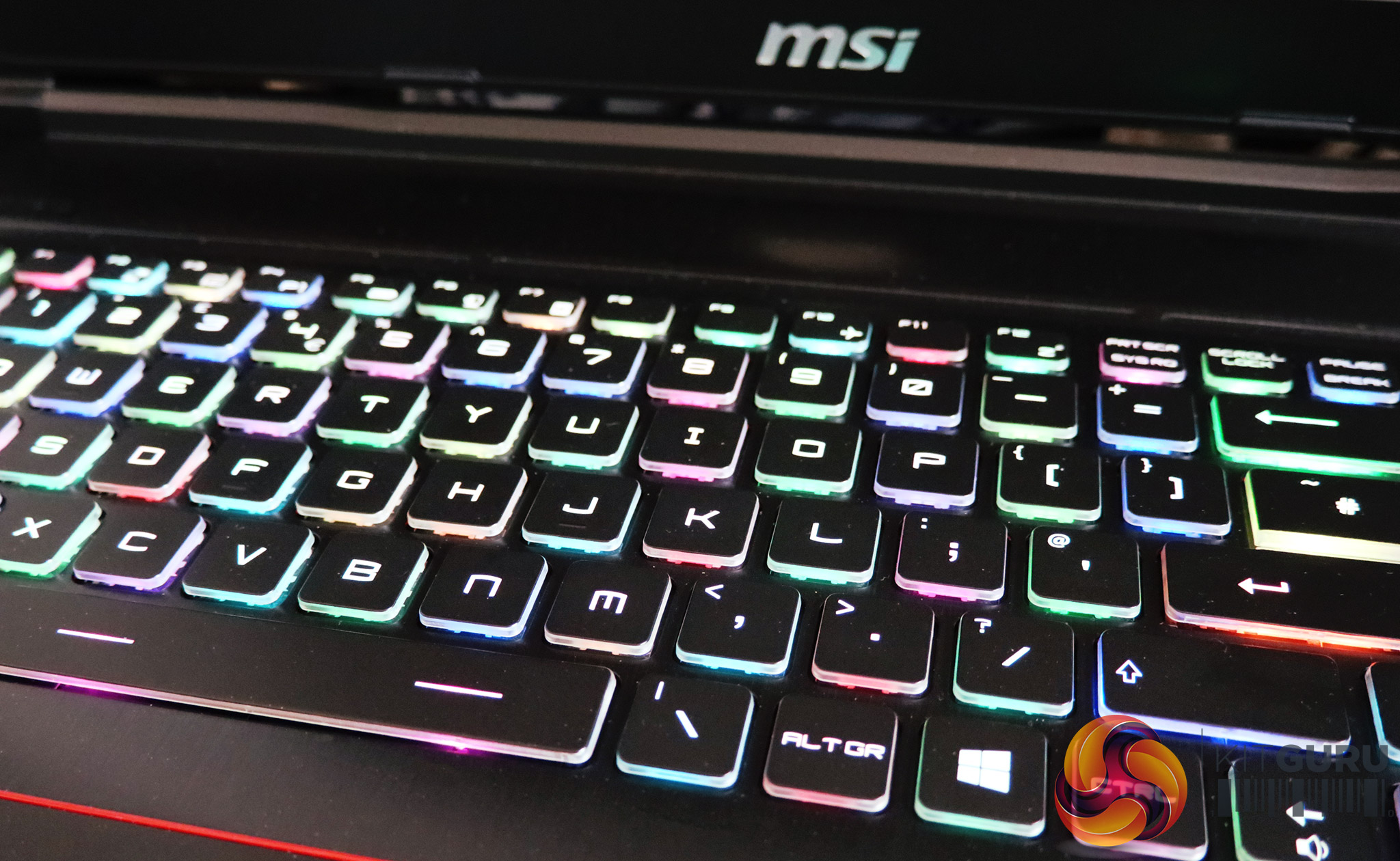 The SteelSeries tray icon provides a host of alternative themes, however, with our particular favourite being Disco, which pulses individual keys in a manic fashion that is borderline insane. It's guaranteed to get attention, along the lines of dancing naked in the Vatican. The SteelSeries tray icon also lets you change the lighting for the tick mark-like patterns on the lid (which MSI calls “Mystic Light”), with a similar range of options, including our beloved Disco.