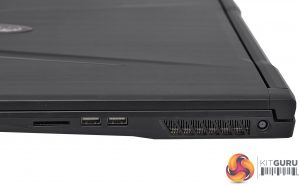 The right-hand side merely offers two USB 3.1 Gen 1 (aka USB 3.0) and an SDXC card reader, with the power jack the other side of the air vent.