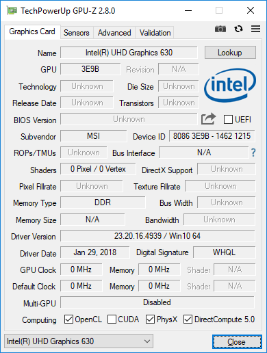 There's also Intel UHD Graphics 630 from the CPU, which should kick in when the system isn't performing demanding 3D work to reduce power consumption.
