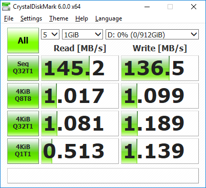 The HGST Travelstar 7K1000 offers 145MB/sec reading and 137MB/sec writing, which is about 40 per cent behind the best desktop 7,200rpm SATA hard disks. But it's pretty quick for a 2.5in mobile SATA drive, and will mean you won't feel too impeded with load times from games installed on this storage device.