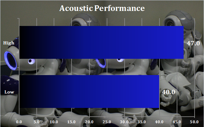 Acoustic recordings are taken while the system sits at the desktop under minimum load. Then we run 3DMark's FireStrike 1.1 and take the measurements again once the sound has settled to its maximum. All fans were left to the MSI-supplied defaults. We recorded audio from a 1m distance from the base unit at approximately the same level.