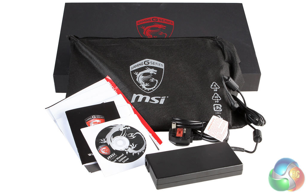 The MSI GS40 6QE bundle includes discs, literature, a power adapter.