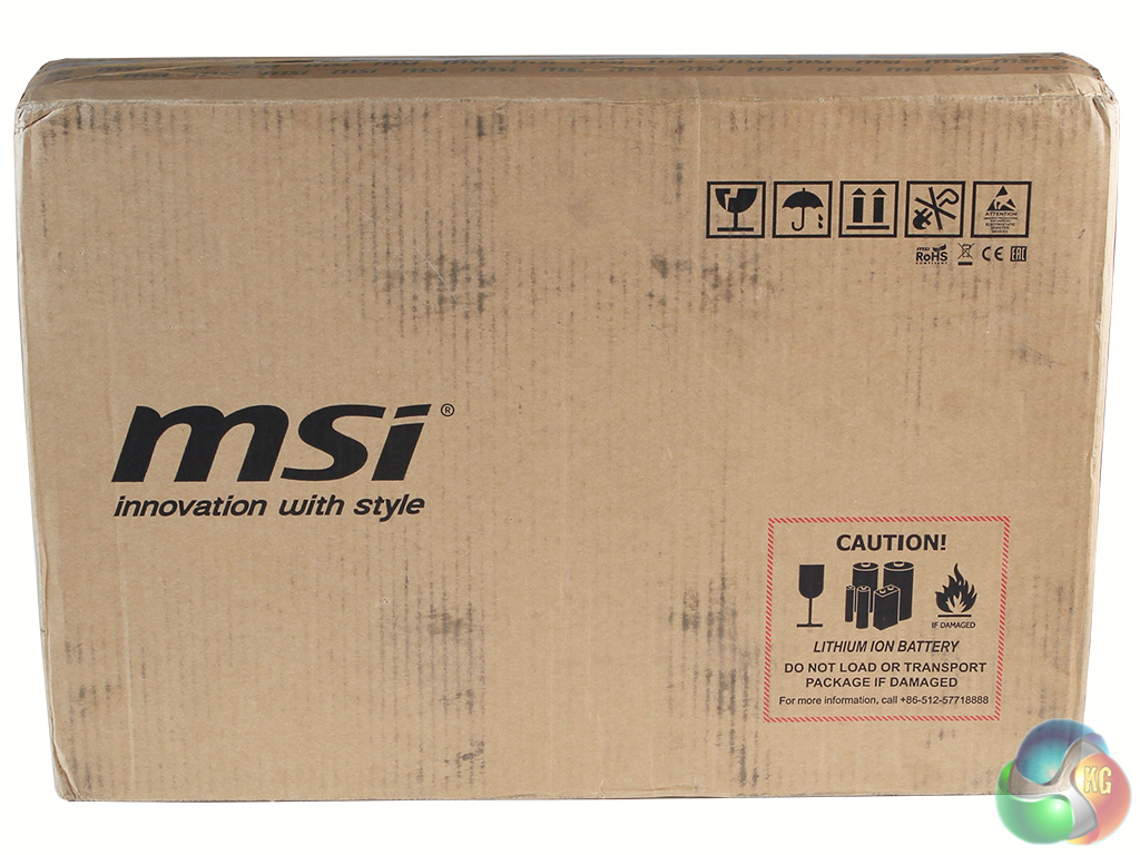 The MSI laptop is supplied well protected between slabs of Styrofoam and inside a plain brown box.