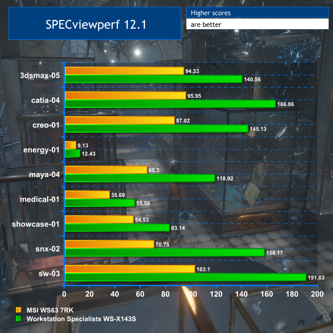 The 3dsmax-05 and maya-04 results show the WS63 7RK will be very capable for 3D modelling and animation. The sw-03 and catia-04 scores show that product design and engineering will be top notch, too.