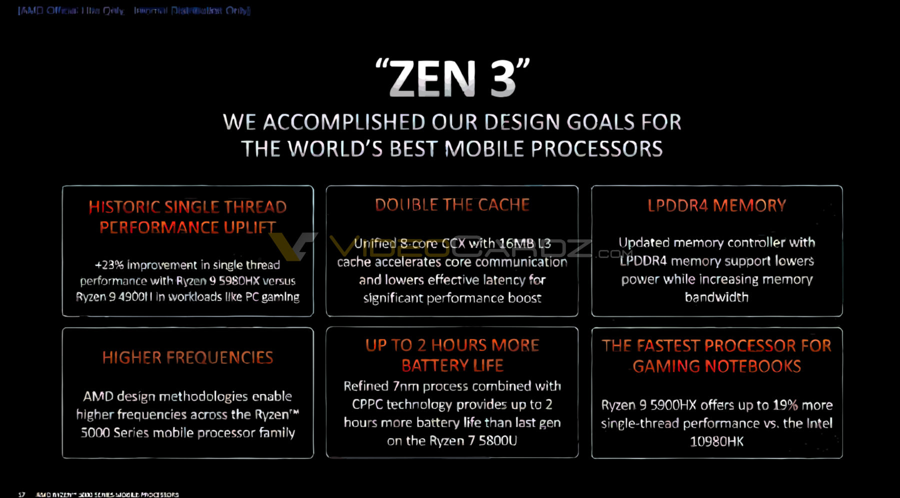 More details about the upcoming AMD Ryzen 5000 mobile processors have surfaced through a leaked presentation. Besides describing the improvements coming with the new architecture, this presentation also includes comparisons between the Ryzen 5000H APUs and the currently available mobile APUs and CPUs from AMD and Intel.