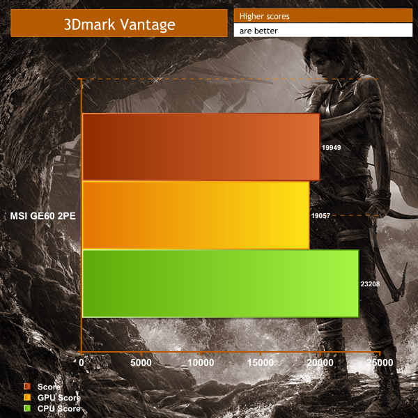 The MSI GE60 performs well in this older Direct X 10 benchmark, scoring almost 20,000 points overall.