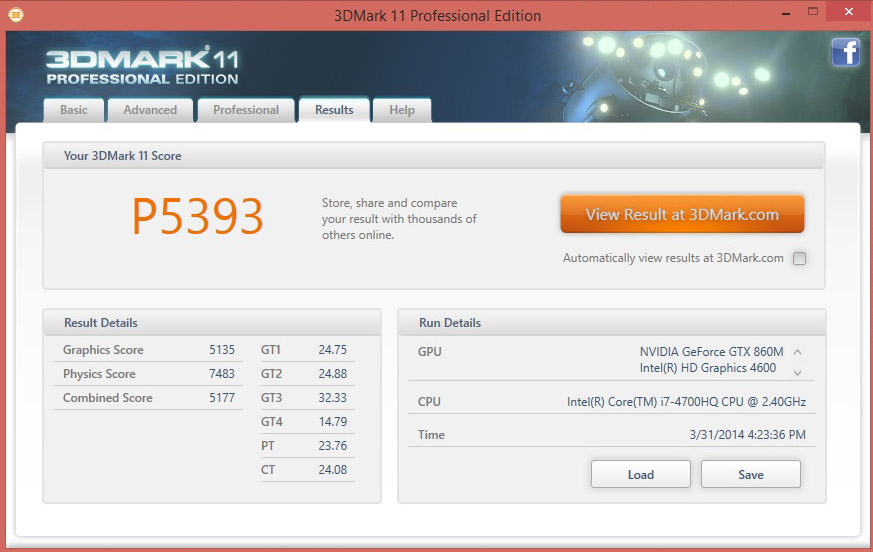 A strong score in 3Dmark11, showing that old and new titles should perform well on the MSI GE60.