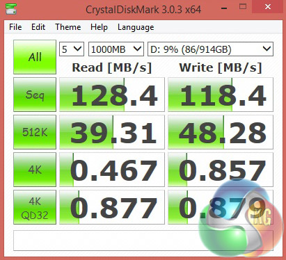 The SSD does alright in CrystalDisk Mark, though its performance is hardly mind blowing, particular its write speed which is disappointing. The HDD is a decent performance drive.