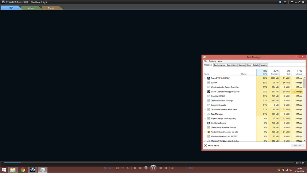 While we'd normally make use of our favourite Blu-Ray software, Cyberlink PowerDVD 13 Ultra, since this laptop comes pre-equipped with a copy of PowerDVD 10, we decided to test CPU usageit on that instead.