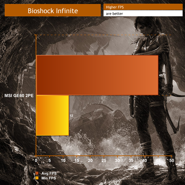 While for the most part the 860M handled Bioshock Infinite pretty well, busy scenes like the raffle caused it to chug to well sub 30FPS. Of course this is at absolute maximum settings, so this is still a damn good run.