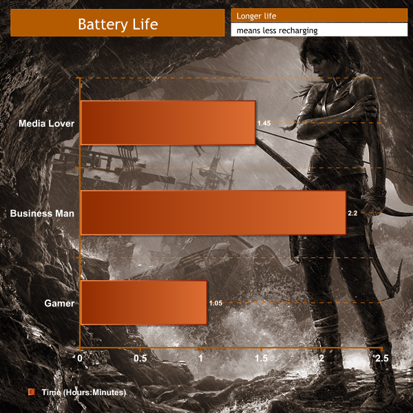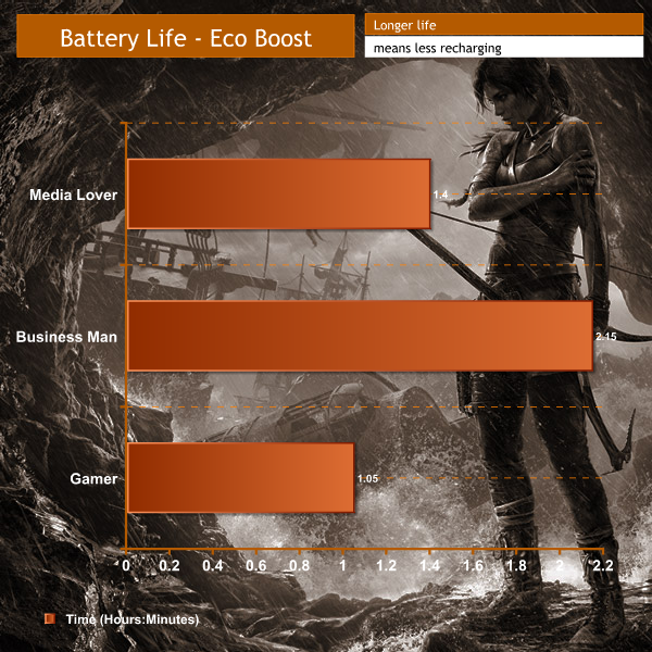 Eco Mode seems to make no difference to any of our scenarios and battery life overall is not impressive on this laptop. Granted as a high-end gamer system you wouldn't expect it to be, but it's a shame that you can't even watch a two hour movie in one sitting.