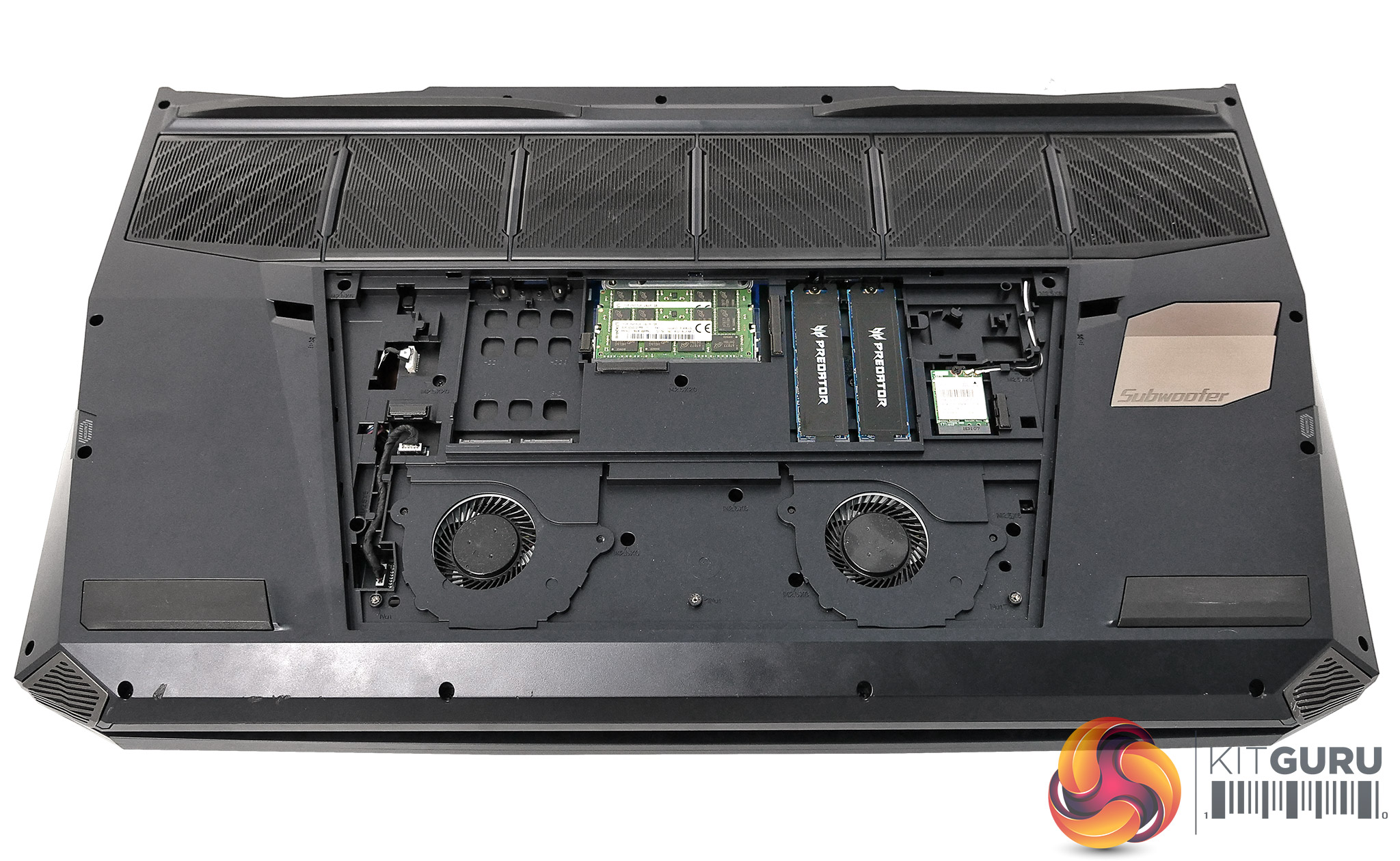 We are confident these changes didn’t affect performance but still, you know, it would have been good to see the full blooded Predator 21 X in action. Also, the top panel that covers the right hand cooling fan was a funky custom part and did not carry an official Acer number.