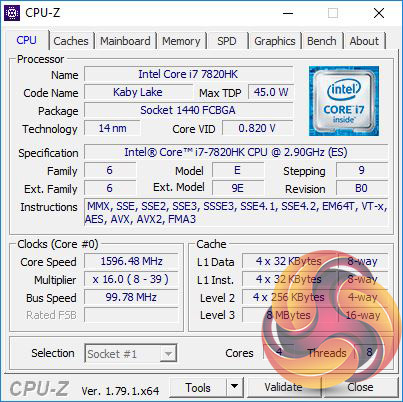 CPU: Intel Core i7-7820HK (2.9GHz-3.9GHz)